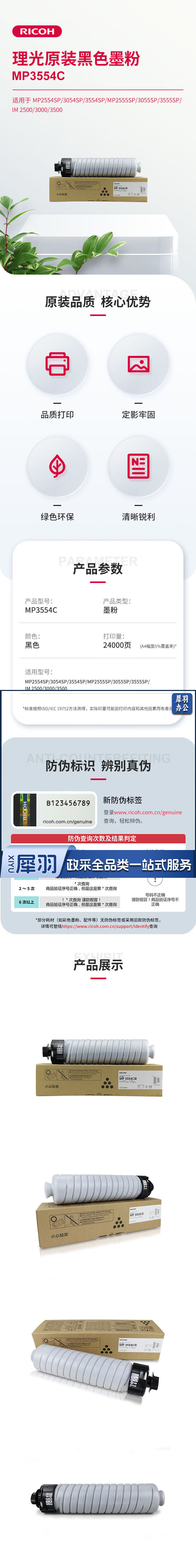 理光(Ricoh)MP3554C 墨粉盒 适用于MP2555SP/MP3055SP/MP3555SP/IM2500/3000/3500
