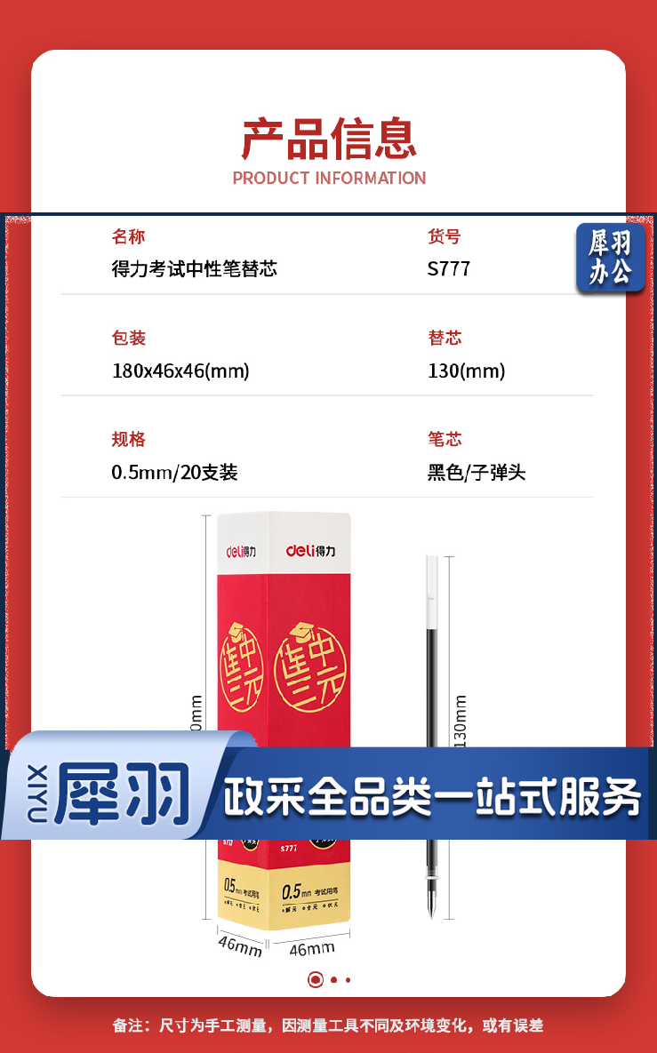 得力S777考试中性笔替芯0.5mm子弹头(黑)