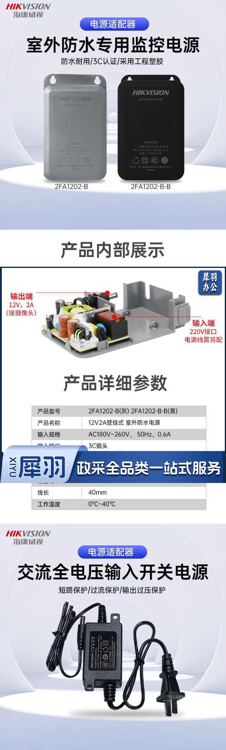 海康威视 DC12V 2A电源 监控摄像头电源适配器 防水电源