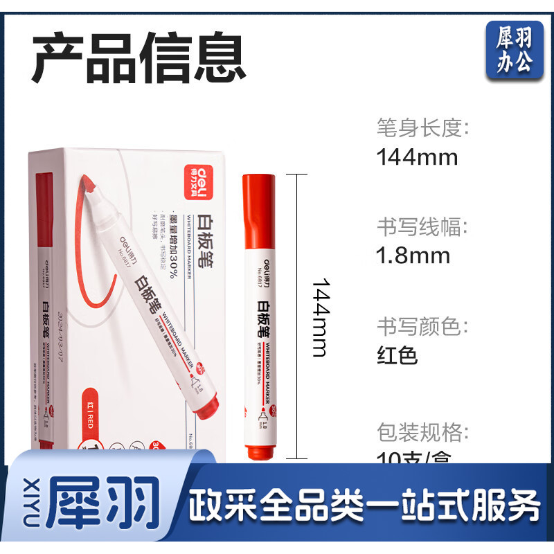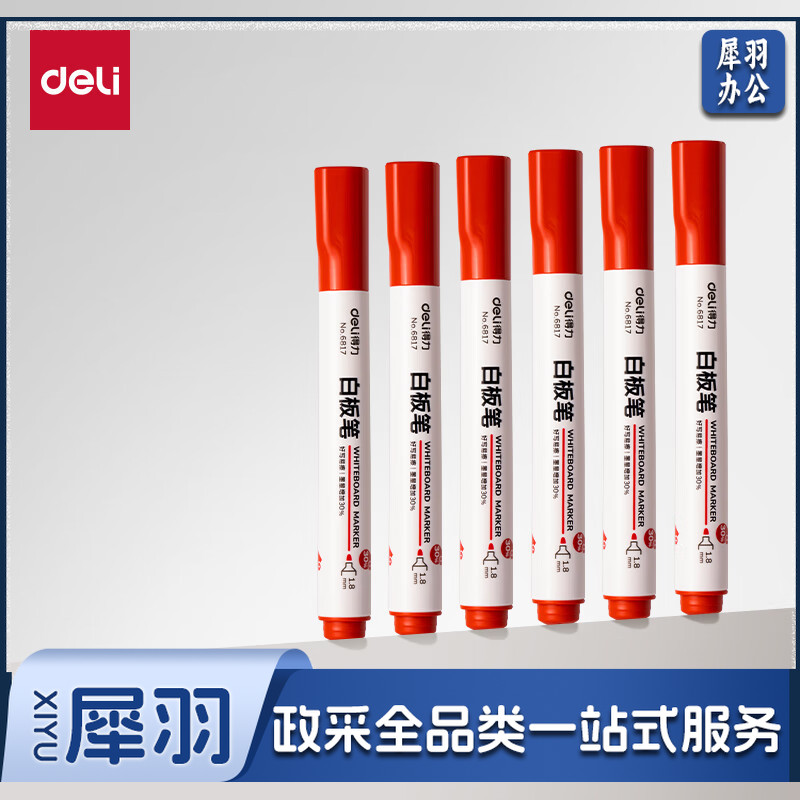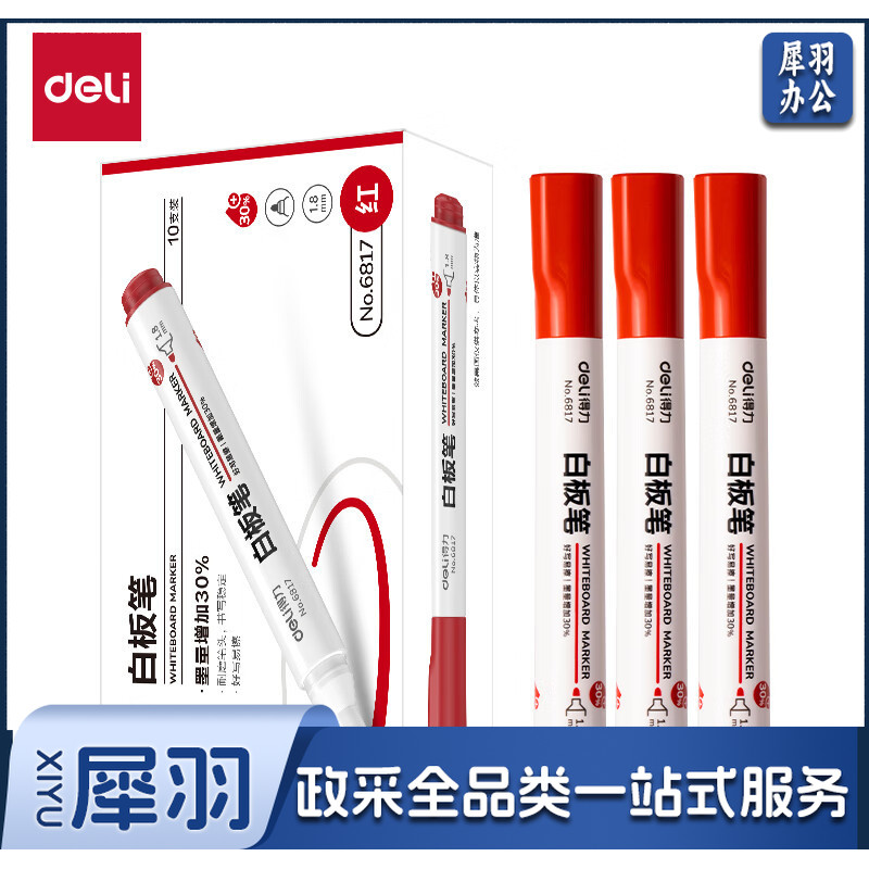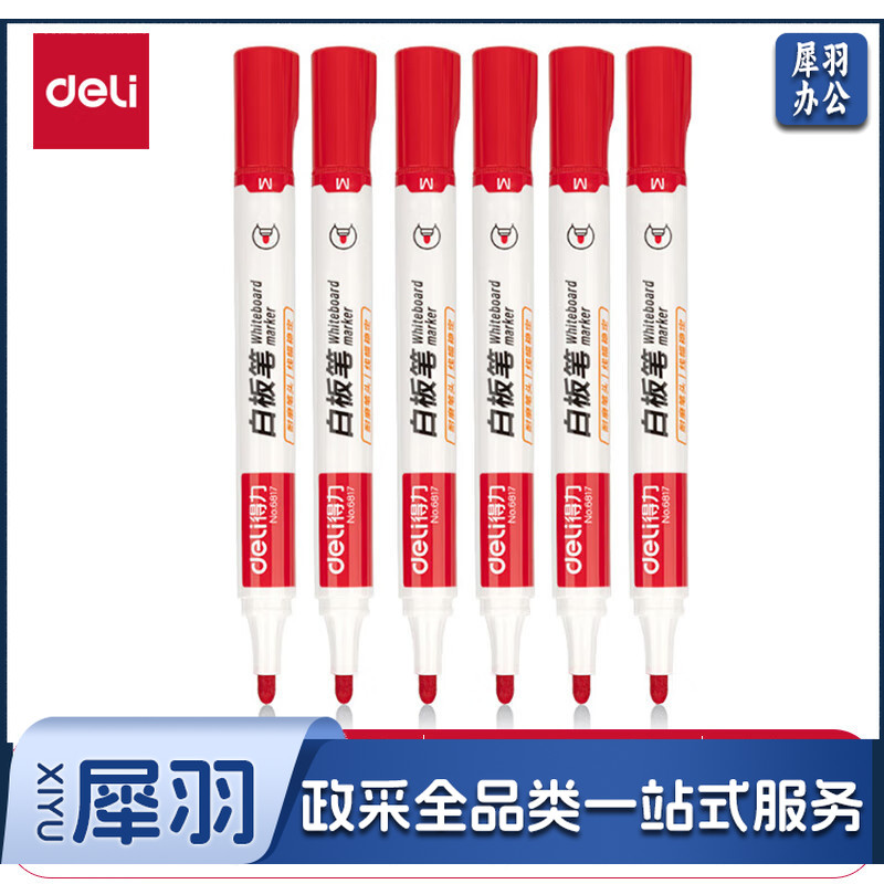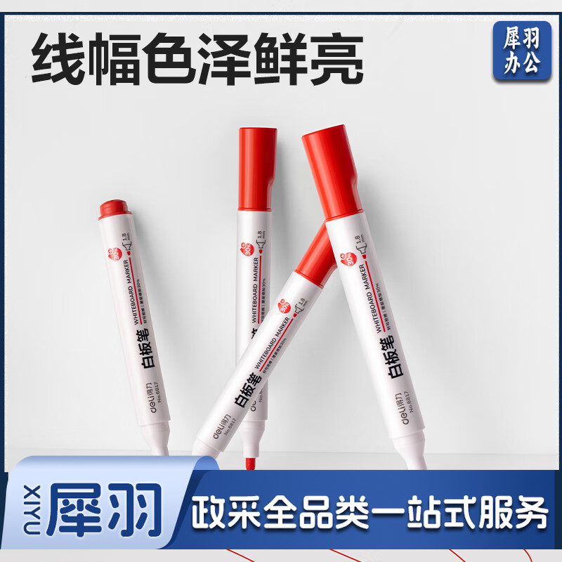 得力(deli) 粗头可擦易擦白板笔 书写顺滑耐磨耐用红色