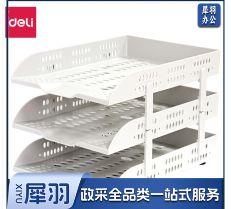 得力(deli)文件框资料架文件架办公用品多层加厚文件夹文件座简易桌上资料夹 三层超厚文件盘 灰白 9215