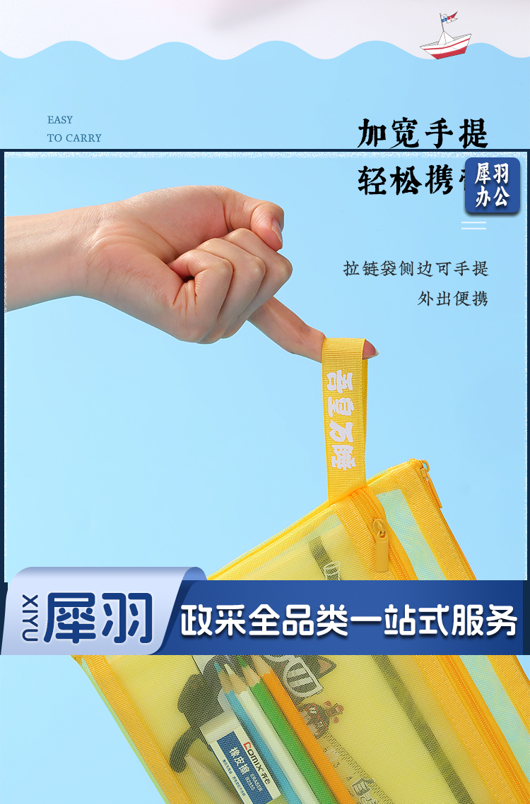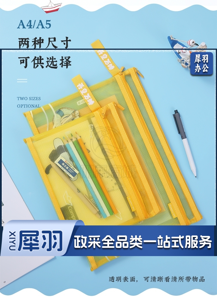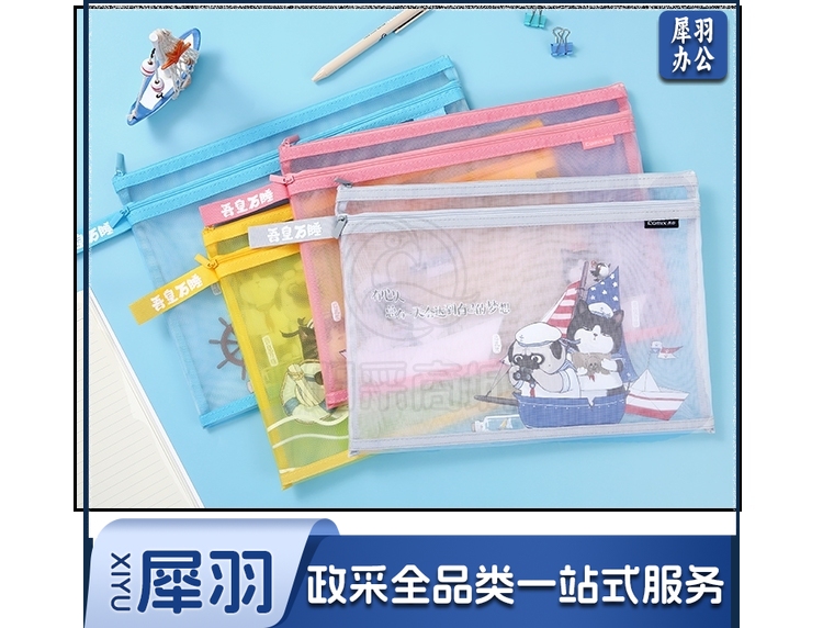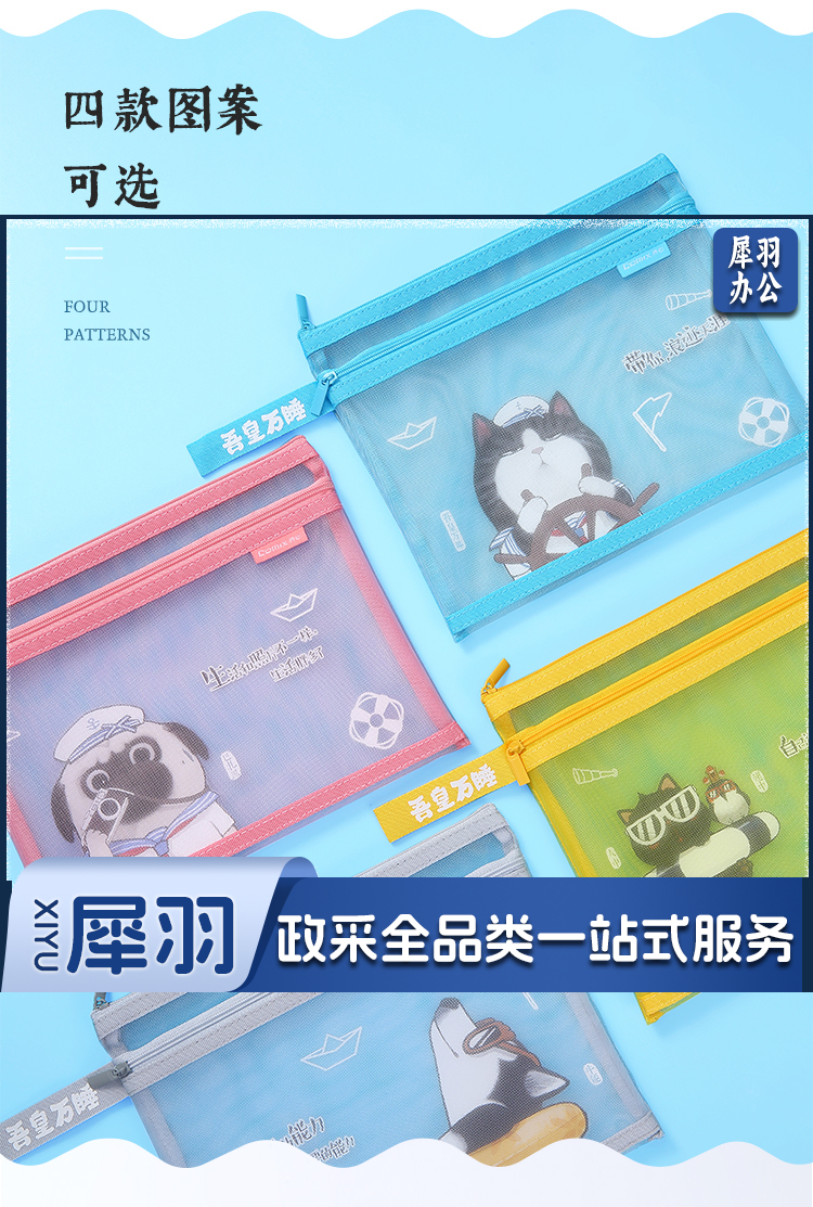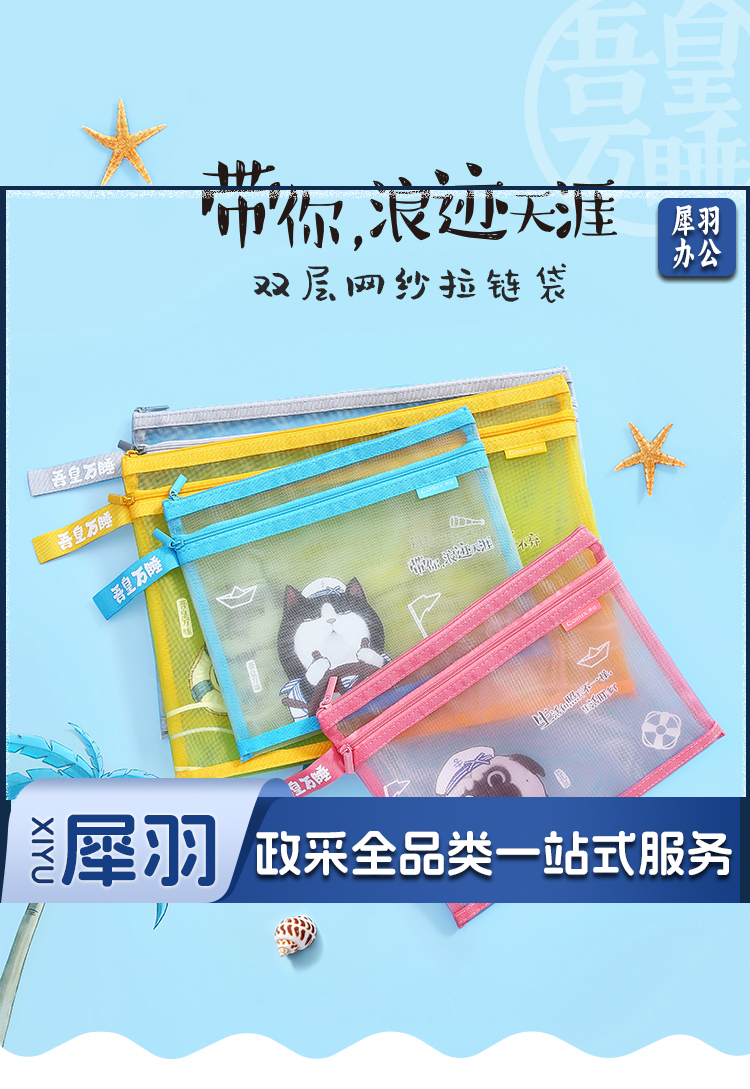 齐心(Comix)吾皇万睡A5文件袋透明双层网纱拉链袋档案袋办公资料袋试卷票据收纳袋 灰色WHA3368