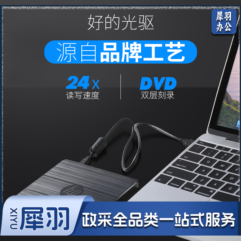 惠普(HP)外置光驱刻录机 外接笔记本台式机移动光驱USB超薄通用DVD8/CD24倍速 黑色