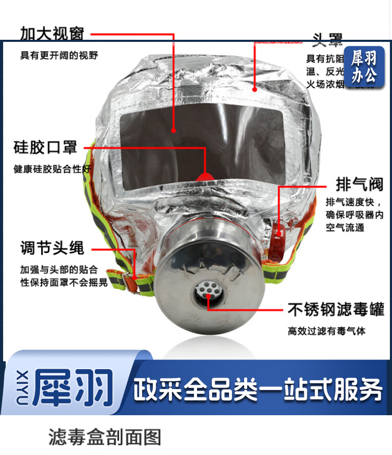 TZL30型 消防面罩 逃生面罩 火灾防烟防毒面具 过滤式自救呼吸器 成人款1个/盒