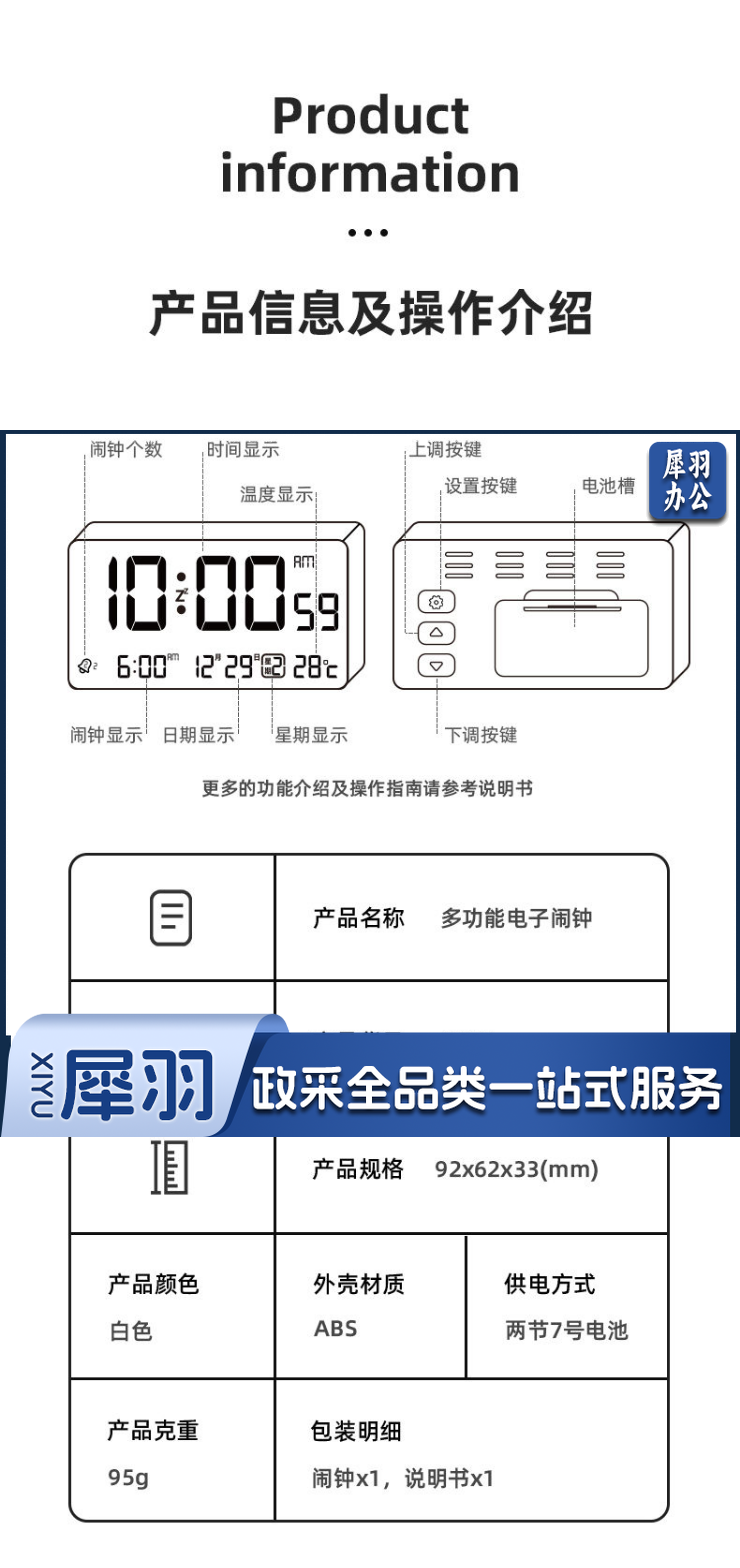 得力8839多功能电子钟(白色)(只)
