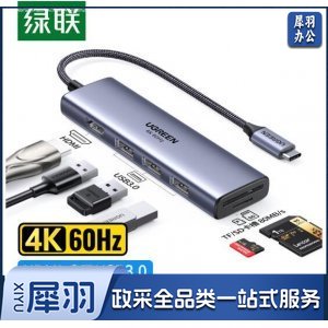 绿联60383 Type-C扩展坞 通用转换器USB-C转接头HDMI线分线器 6合1