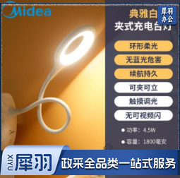 美的 (Midea)led台灯儿童学生学习阅读夹子灯宿舍寝室卧室床头书桌夹式小台灯可usb充电典雅白