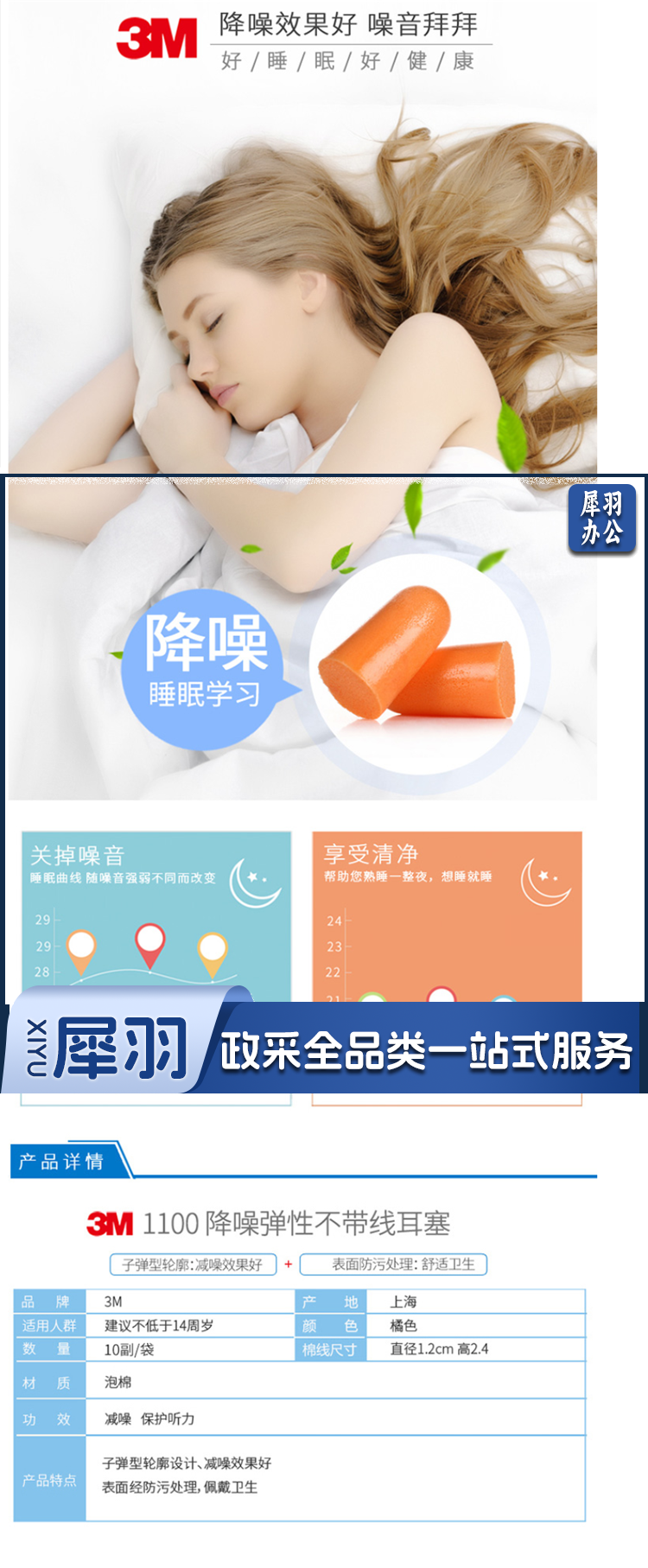 3M 1100(不带线) 耳塞 抗噪 防噪音 睡眠隔音耳塞