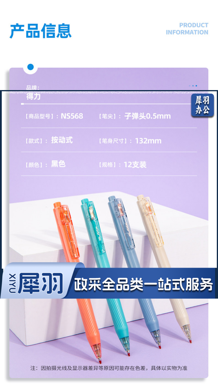 得力NS568纽赛臻顺滑按动学生中性笔0.5mm子弹头(黑)(支)