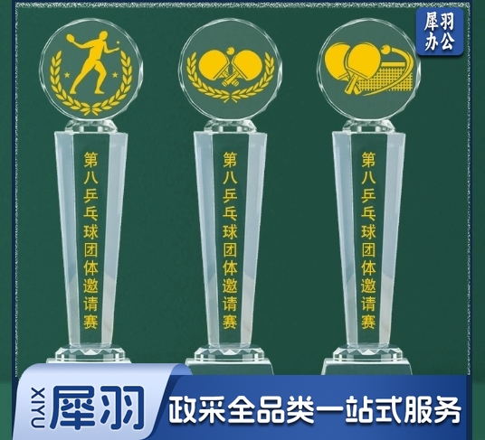 (大号29X7CM)乒乓球比赛水晶奖杯制作体育团体荣誉表彰免费刻字运动会新款奖牌