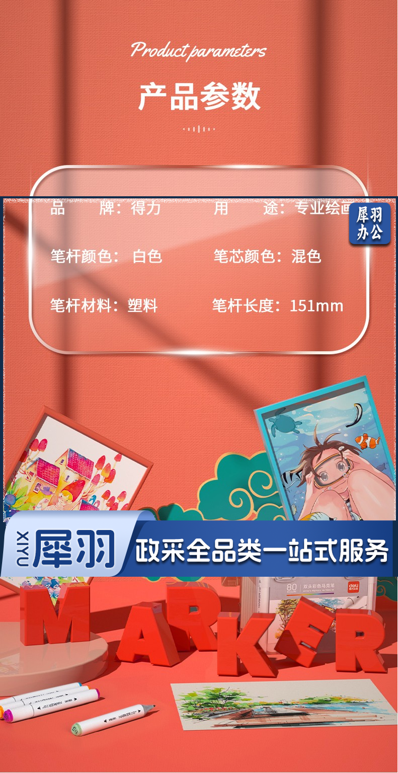 得力70803-60色酒精性三角杆马克笔(混)(60色/桶)