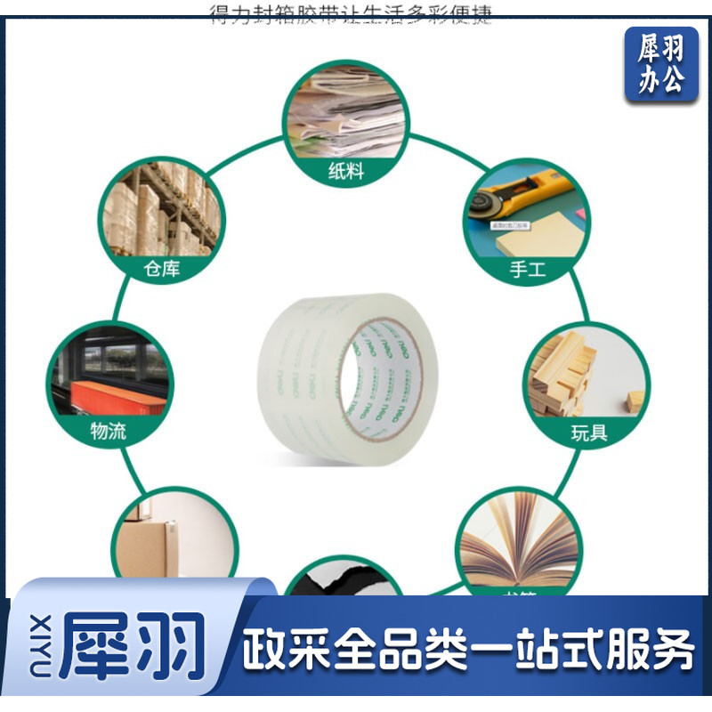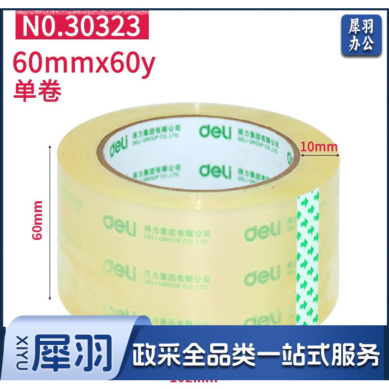 得力(deli) 大卷快递打包封箱带胶带胶布透明胶封口带宽6cm 单卷 60mm*60y (30323)