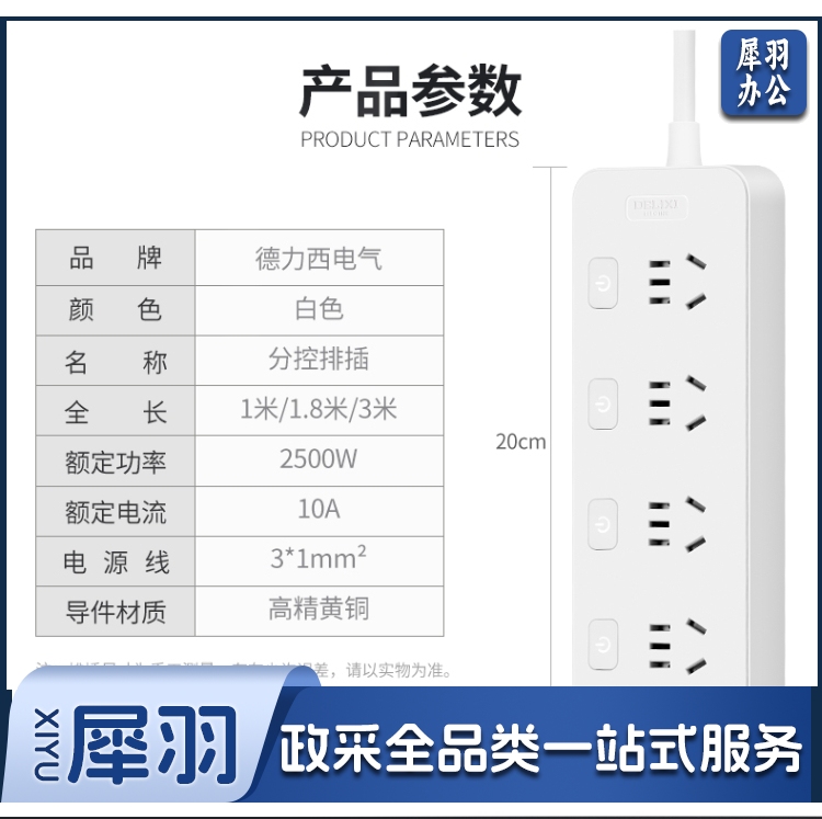 德力西(DELIXI)新国标分控插座/插排/排插/插线板/插板/接线板/拖线板 4位分控全长1.8米J-E4K4X/B