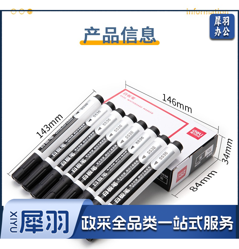 得力(deli)白板笔可擦 黑板笔 易擦亚克力粗头办公文具 S536 10支/盒 1盒起售