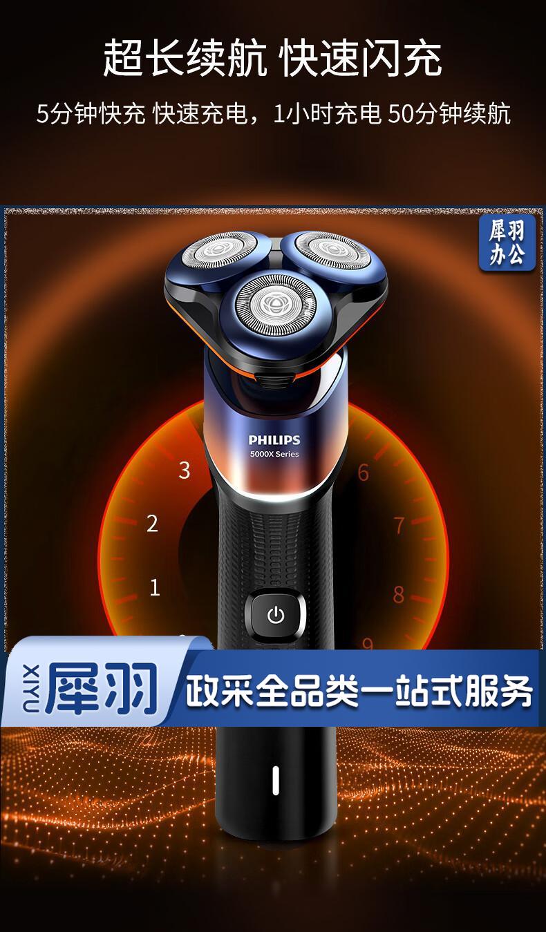 PHILIPS飞利浦全新5系蜂巢X剃须刀 SkinEase肌能舒缓科技刮胡刀 X5005橙色【敏感肌适用】
