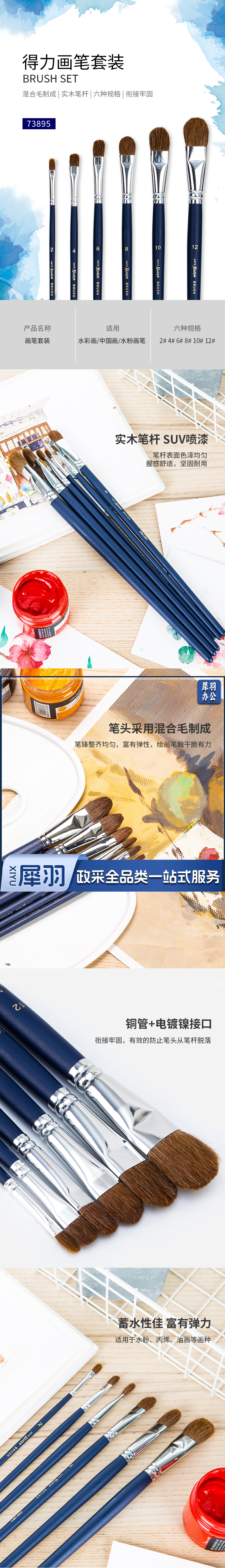 得力73895_舌形混合毛画笔6支套装(蓝色)(6支/袋)