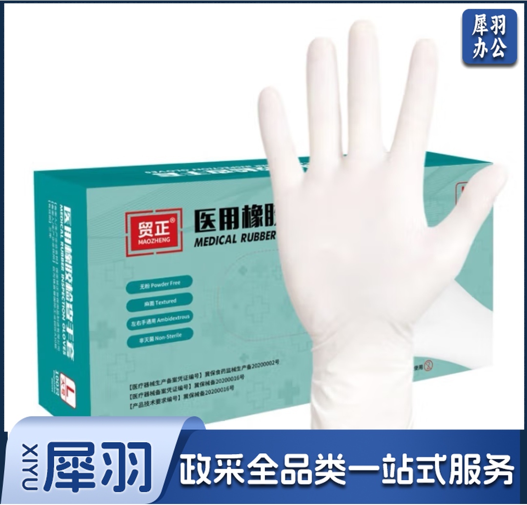 贸正 MZS-Y1 检查手套 一次性橡胶手套 无粉乳胶手套100支