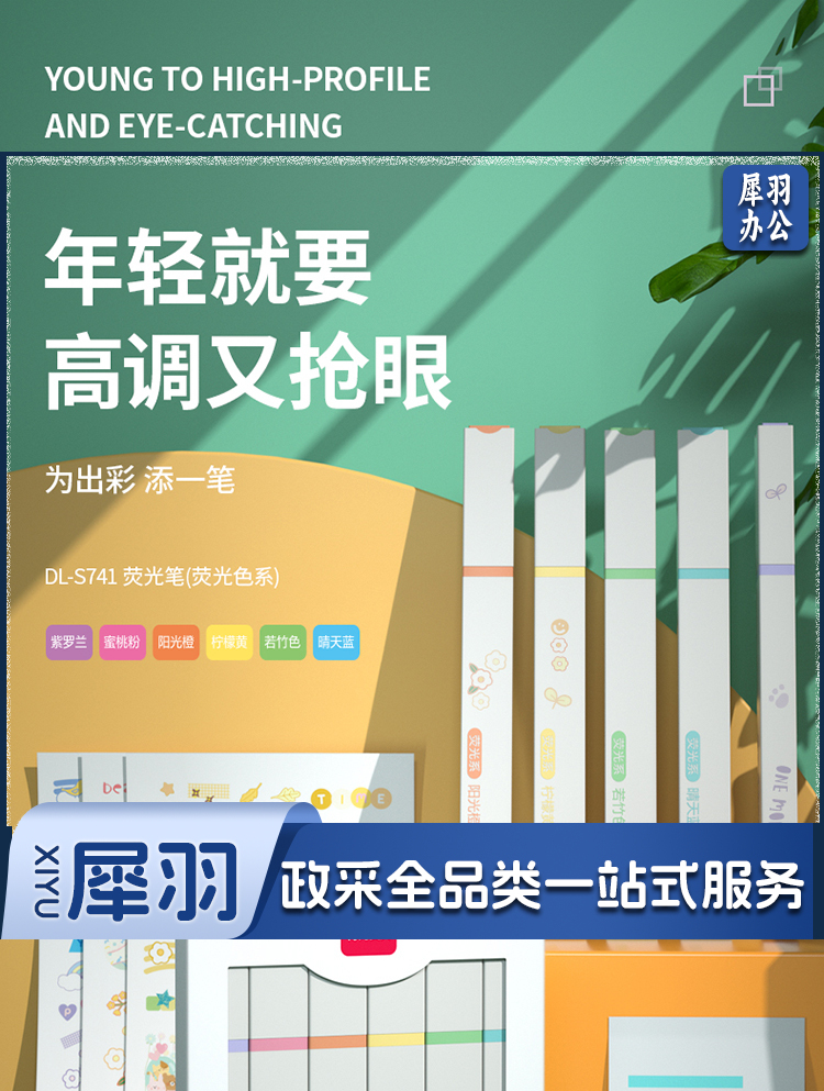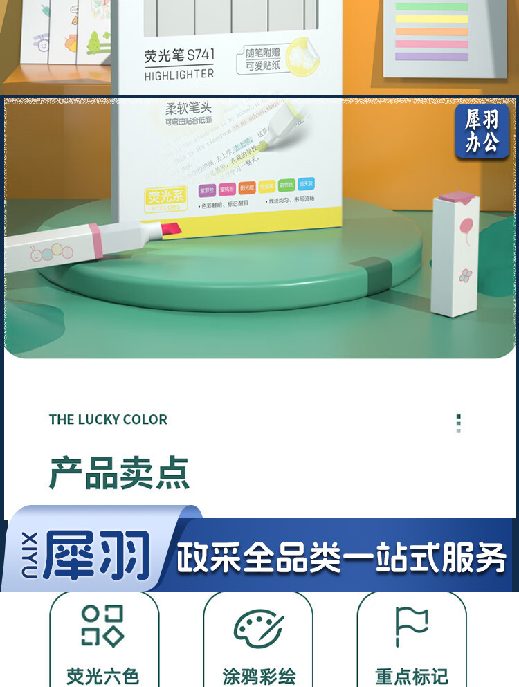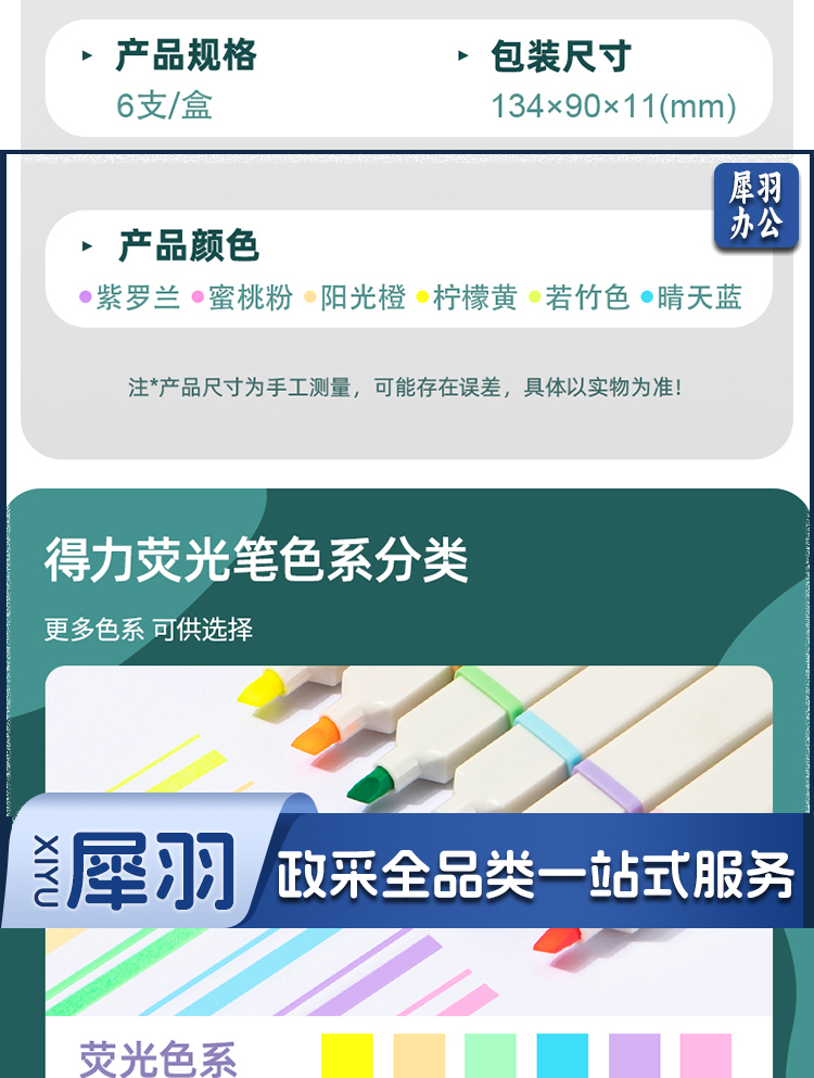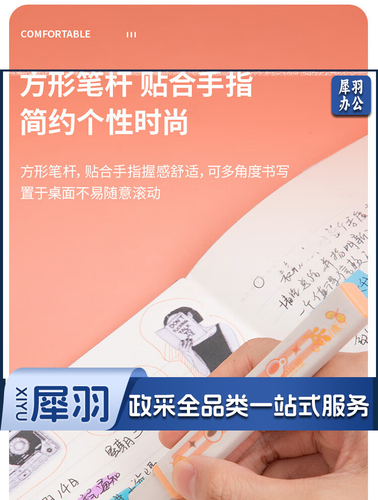 得力(deli) 6支装荧光色系方杆荧光笔套装 S741