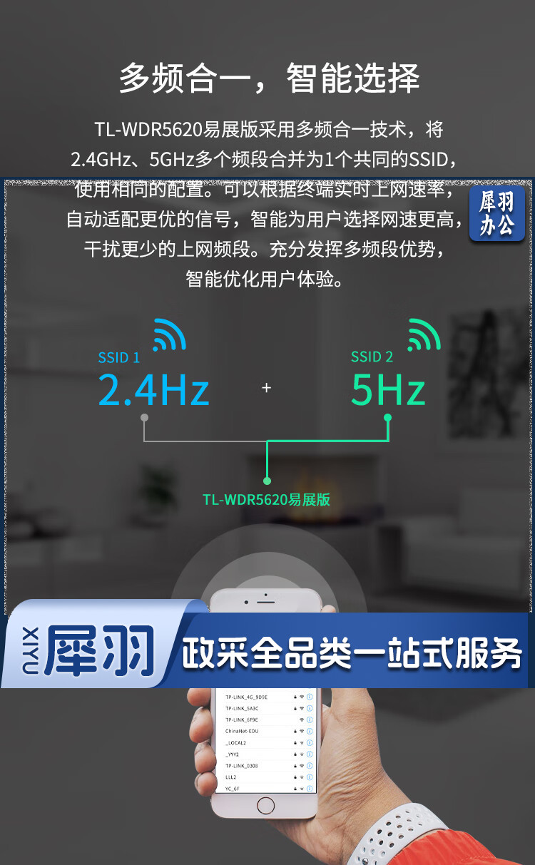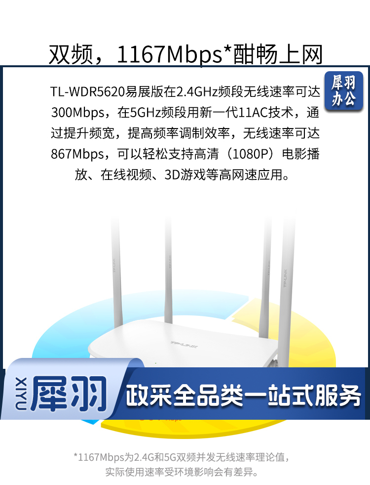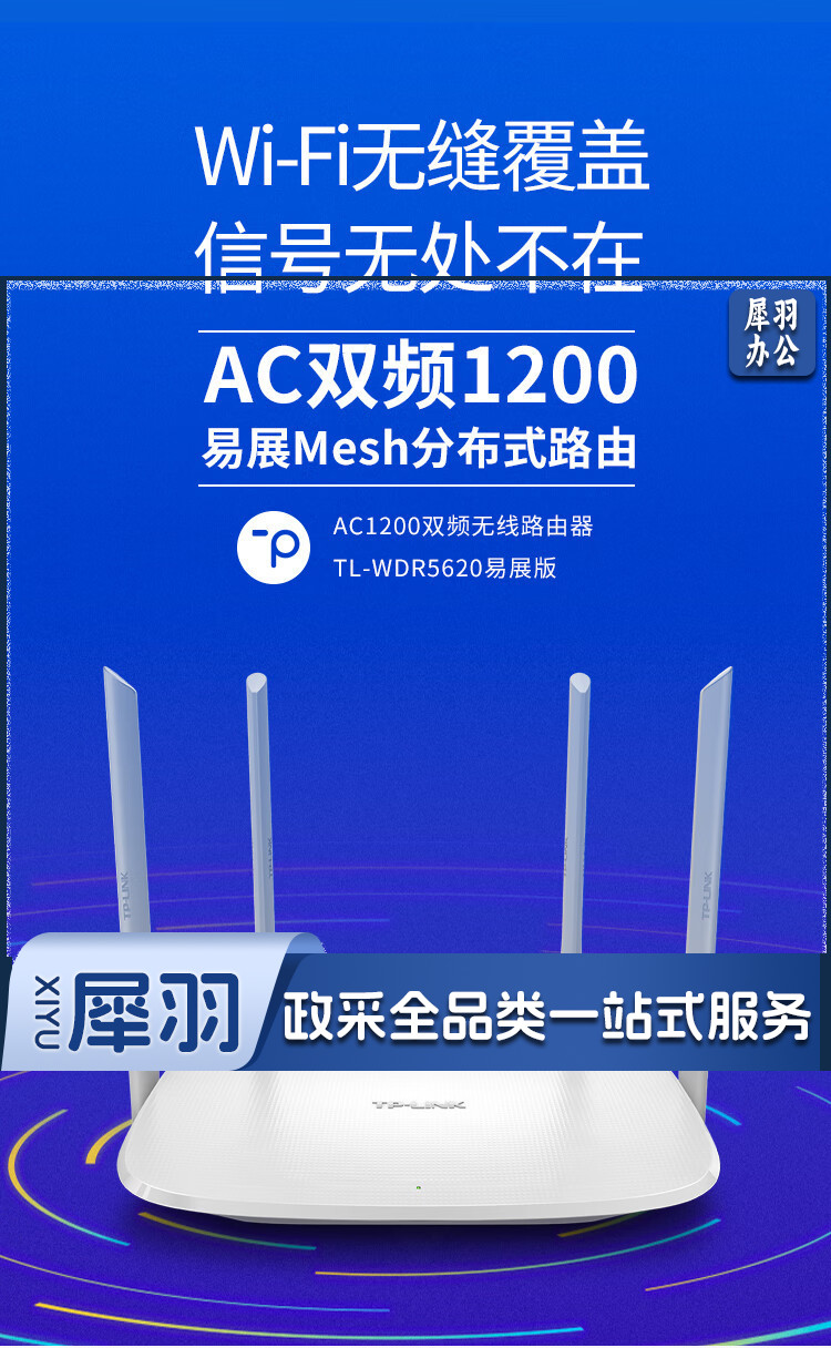 普联(TP-LINK) AC1200智能5G双频无线路由 四天线智能 TL-WDR5620易展版