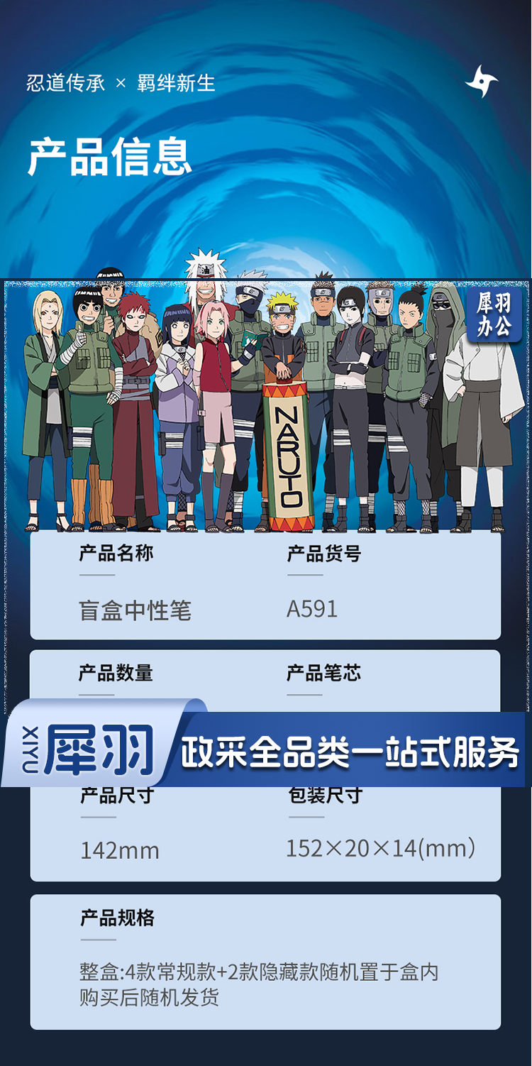 得力A591火影忍者学生中性笔0.5mm全针管(黑)(盒)