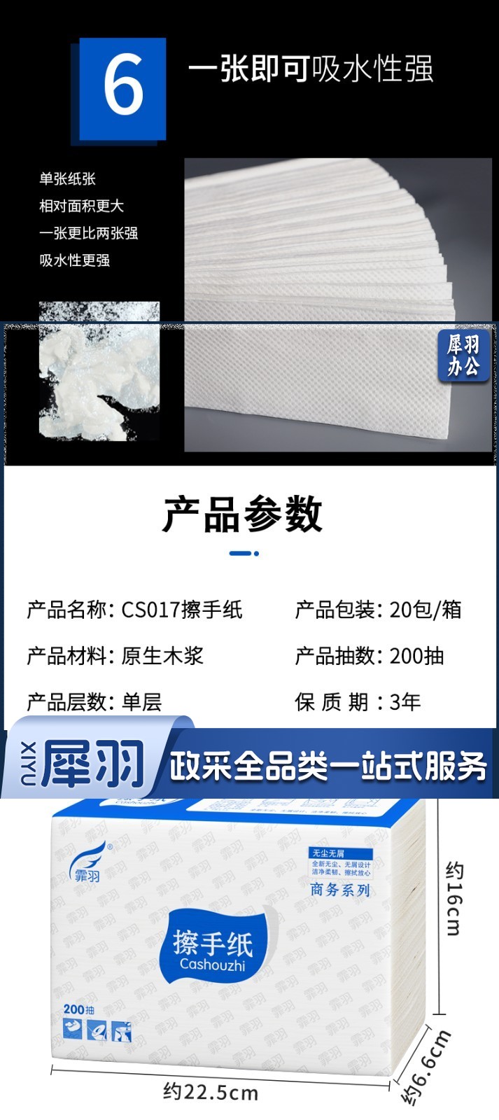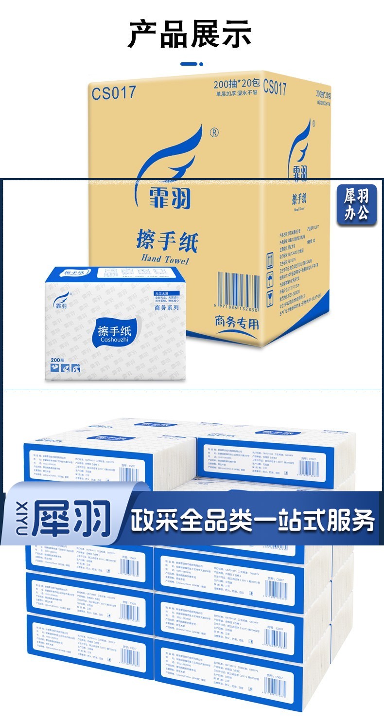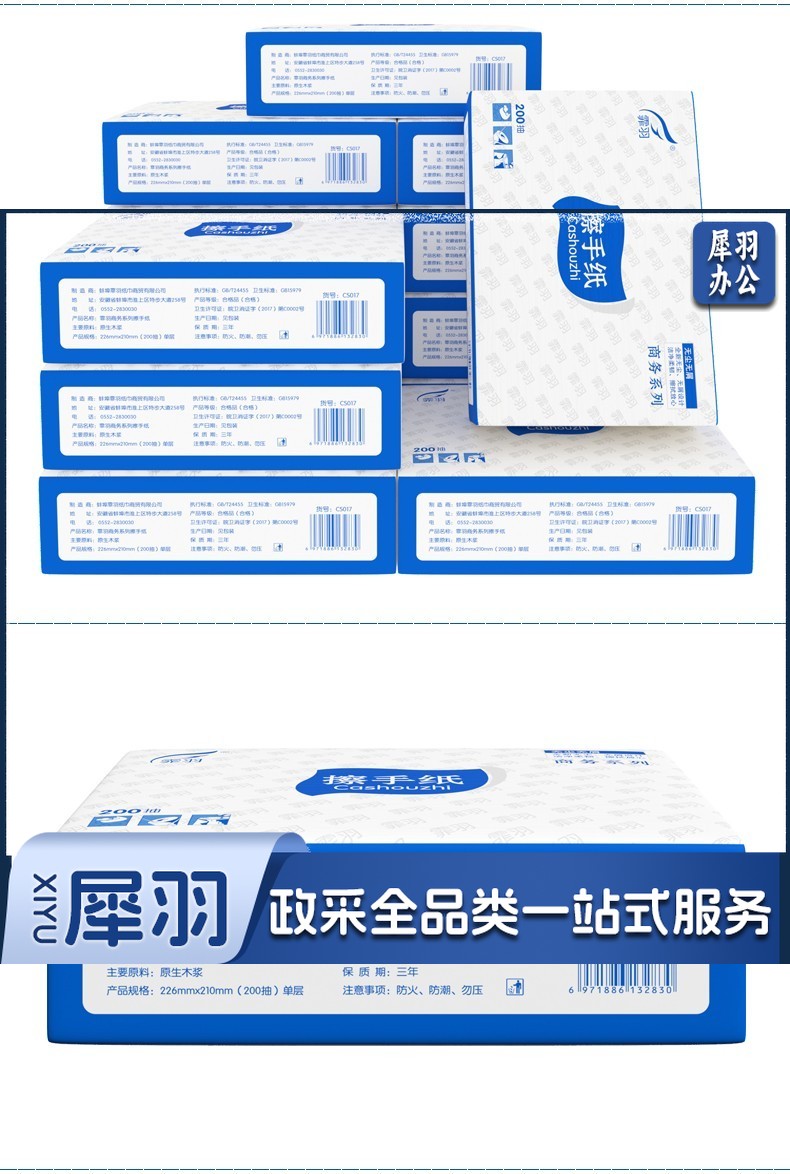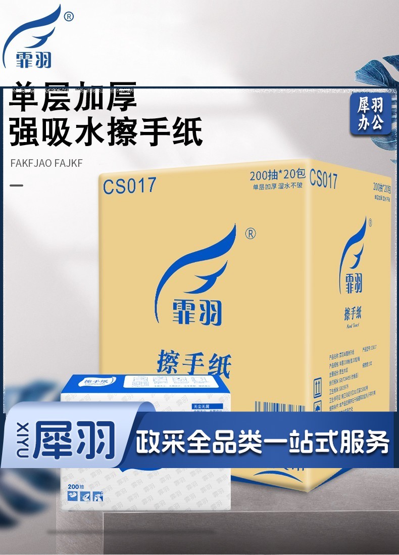 霏羽擦手纸加厚型加大单层200抽20包檫手纸商用卫生纸抽取式抽纸酒店卫生间厨房用纸吸油吸水纸巾CS017