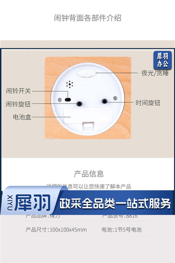 得力8816闹钟(木纹)(1只/彩盒)4寸