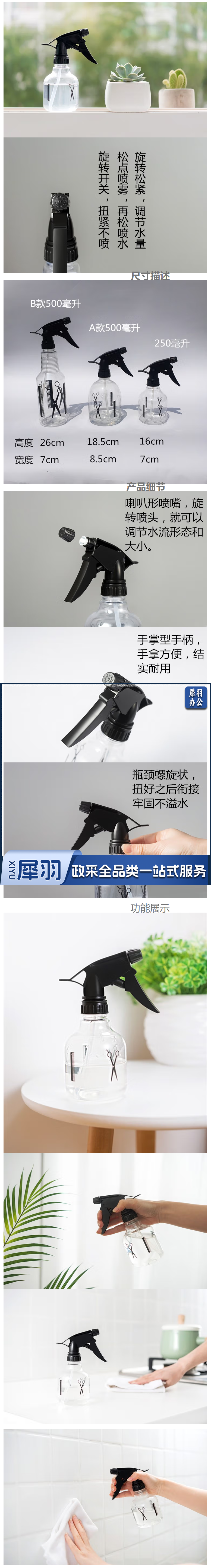 喷花器浇花手压式小喷水壶 园艺洒水壶家用种花器小型喷壶瓶 250毫升喷壶