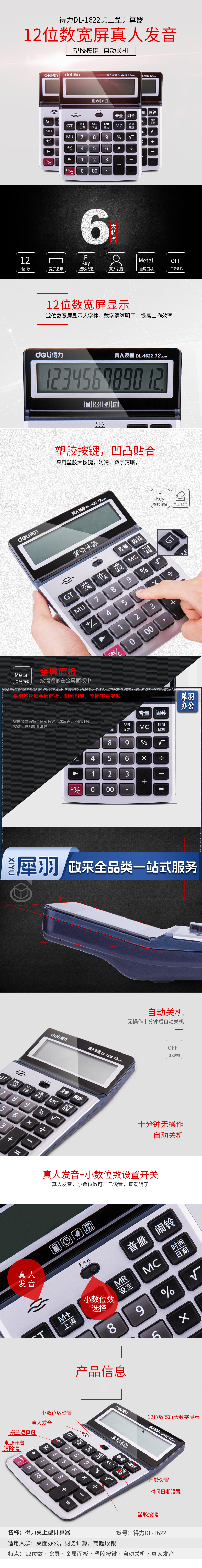 得力/deli 1622 语音计算器(单位:台) 银