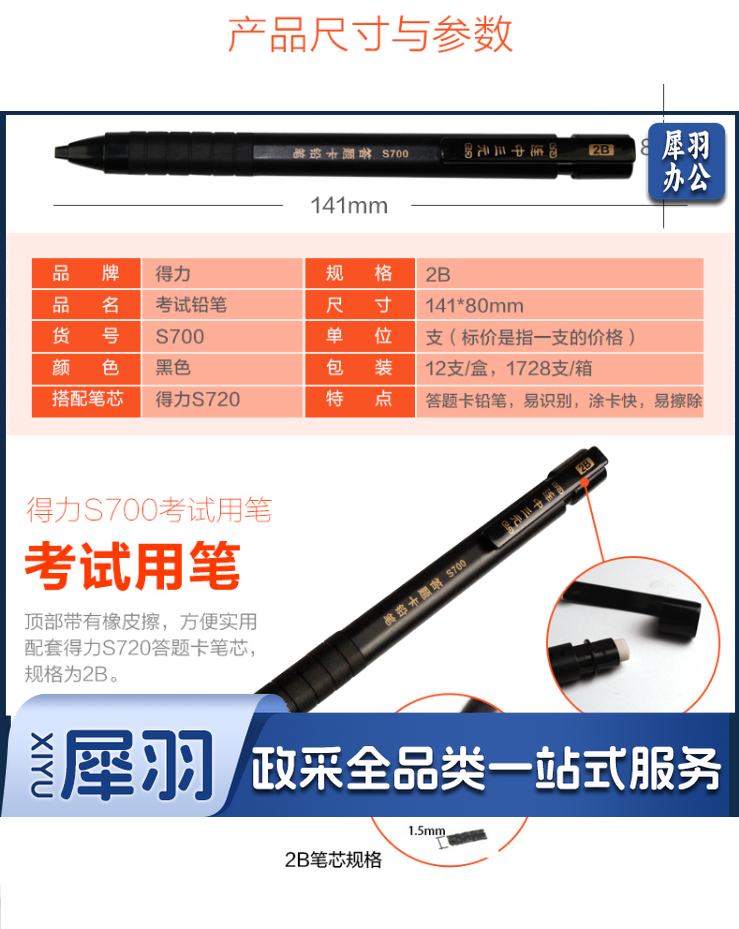 得力S700连中三元答题卡铅笔 2B(黑)(支)