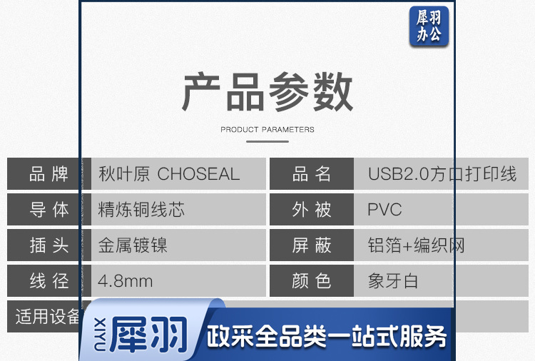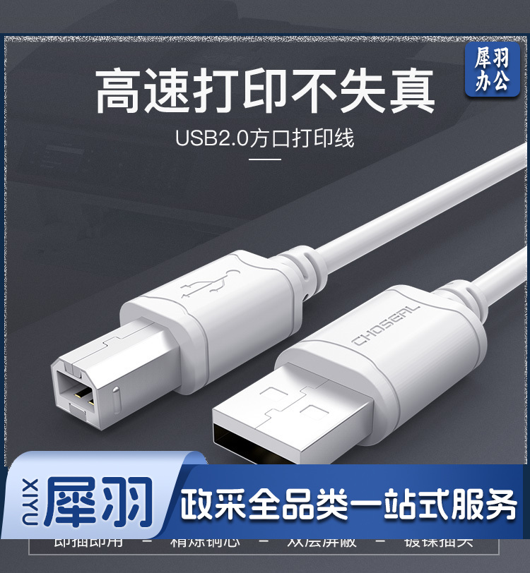 秋叶原(CHOSEAL)高速USB打印机数据线 2.0打印机线 方口usb打印线 电脑周边数据线 5米 QS5307T5 (可当天配送发货)