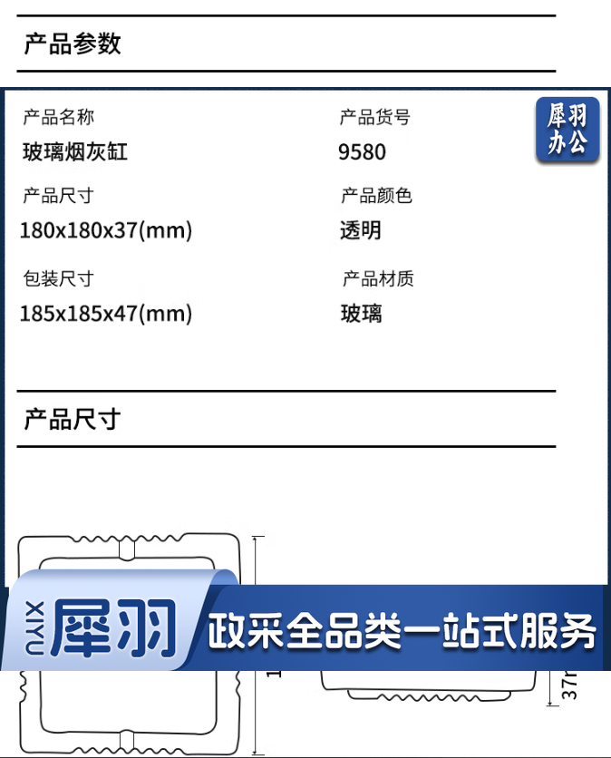 得力 DELI 9580 烟灰缸 客厅办公透明玻璃缸 简洁大方