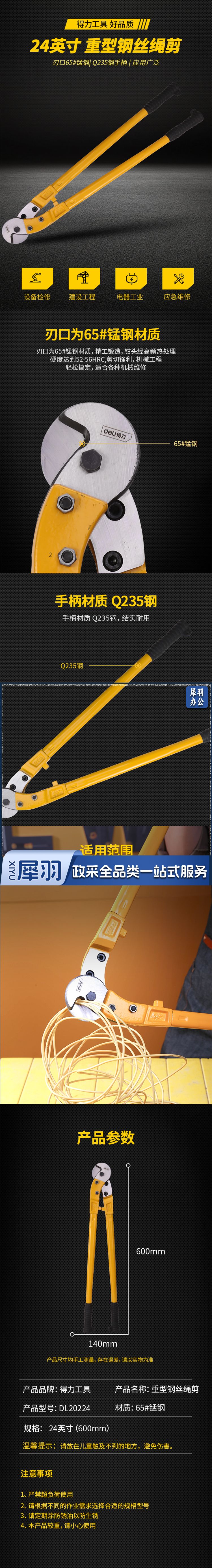 得力工具DL20224重型钢丝绳剪24"(单位:把)