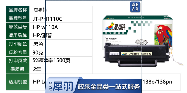 杰思特JT-CH1110C硒鼓适用HP 110a/108a/108w/MFP136a/136nw/136w/138p/138pn/138pnw 带芯片 jcyd-230207111048