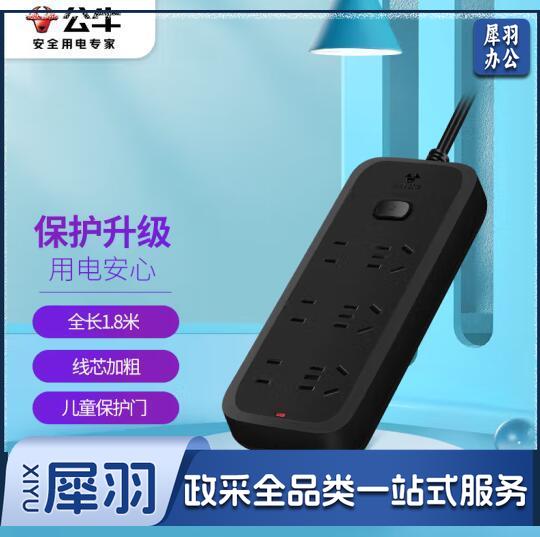 公牛(BULL)插座/插线板/插排/排插/接线板/拖线板 黑色质感 6位总控全长1.8米 GN-B8330H