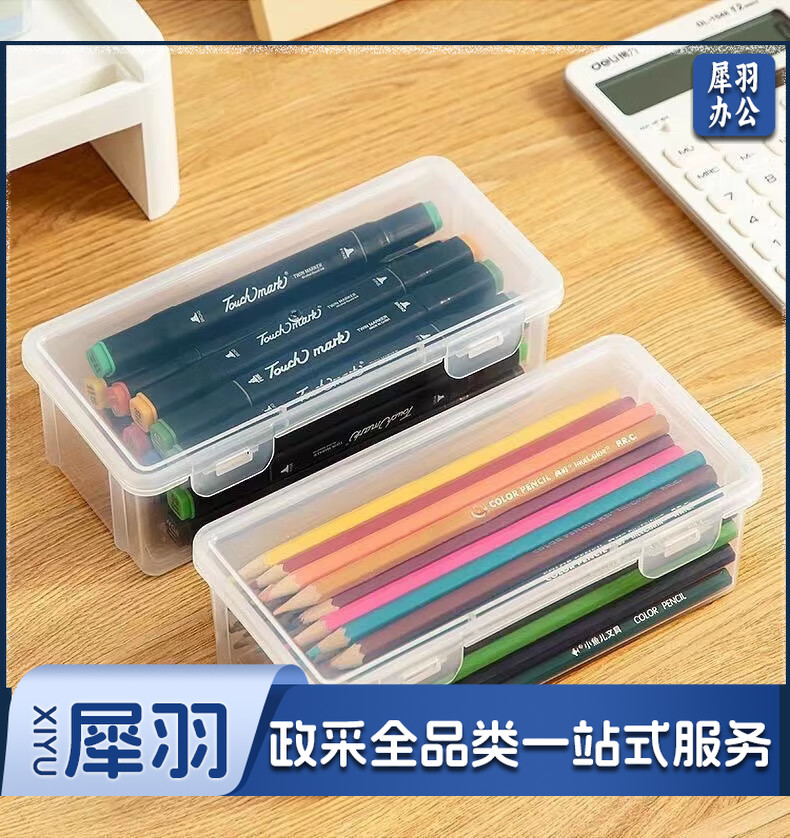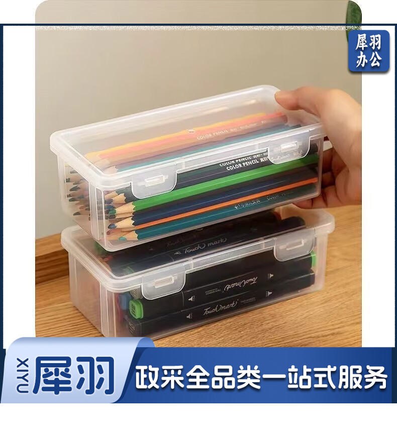 透明文具收纳盒多功能收纳盒大容量笔筒装按动中性蜡笔 2个【多功能收纳盒】