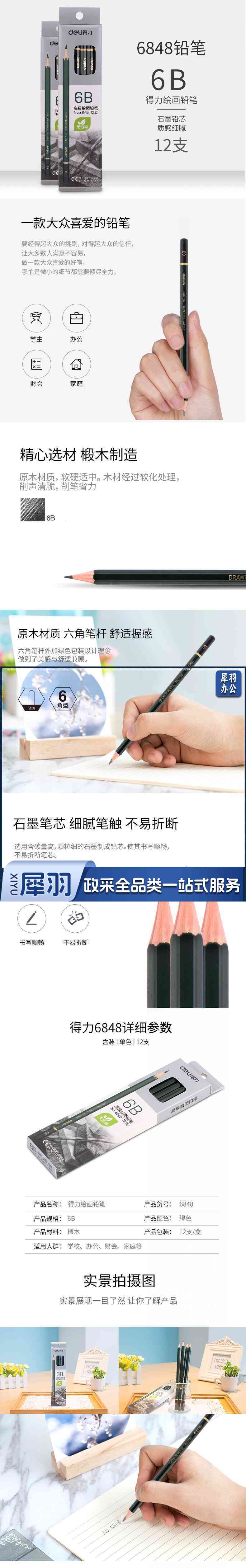 得力6848-6B高级绘图铅笔(绿色)(12支/盒)..