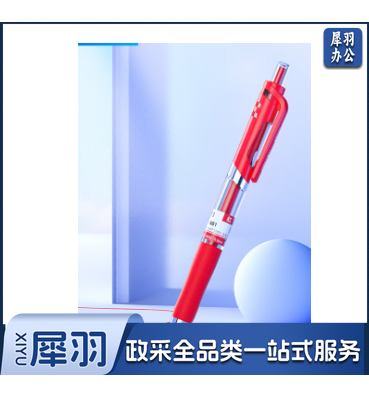 得力(deli)S01中性笔签字笔 0.5mm子弹头经典办公按动笔水笔红色 12支/盒