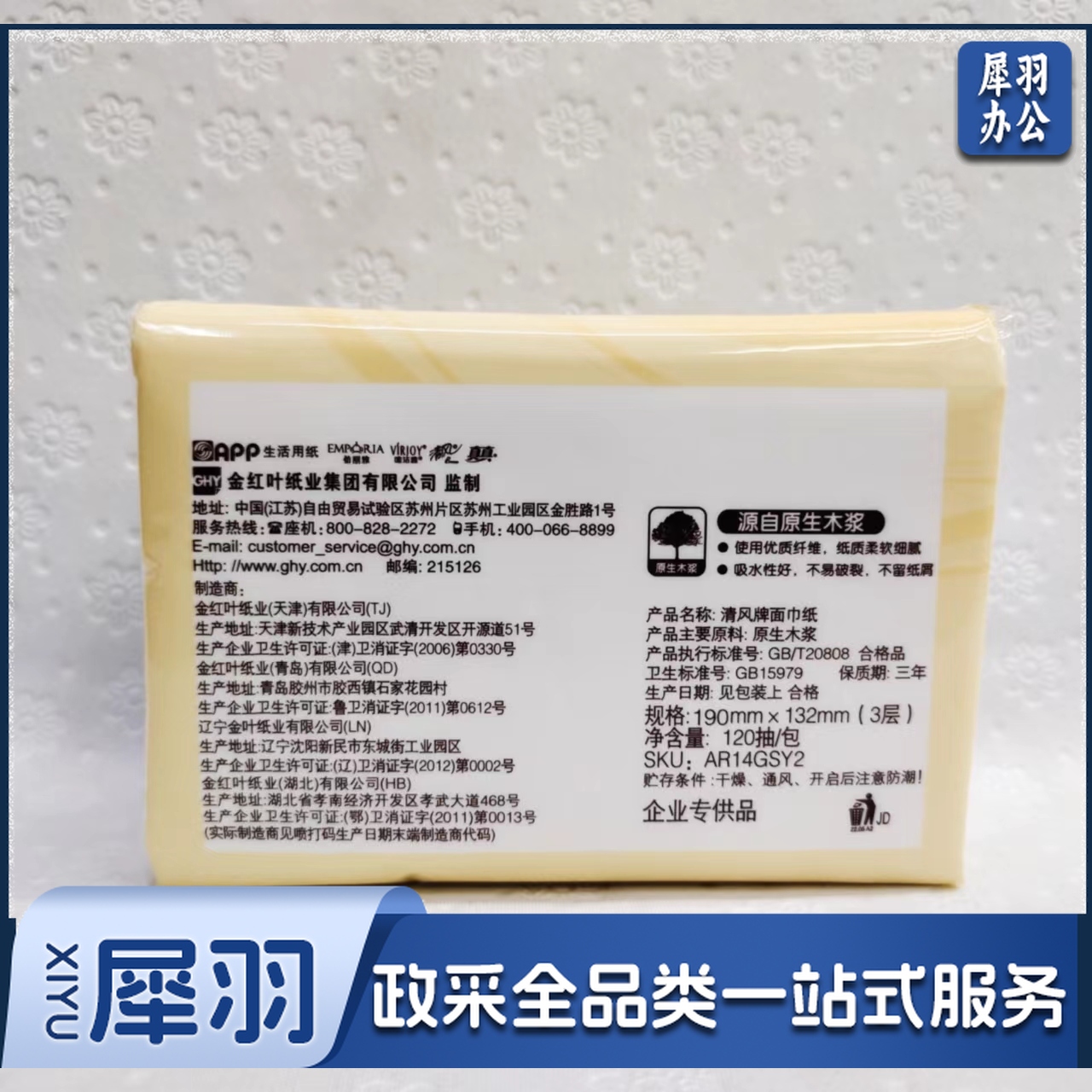 原生木浆面巾纸