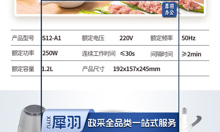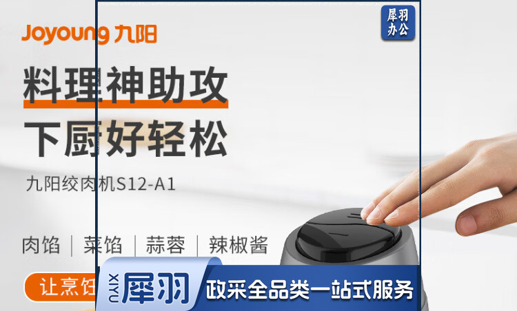 九阳 绞肉机家用多功能电动搅拌绞馅机研磨碎菜切肉机1.2L大容量两档可调 S12-A1