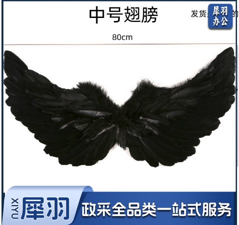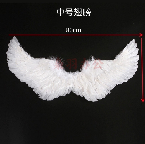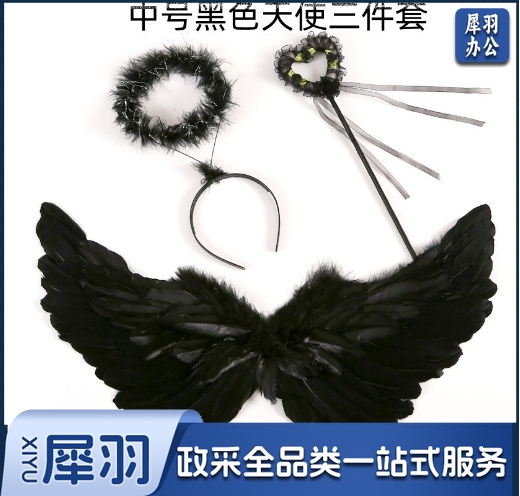 羽毛翅膀天使道具舞台表演儿童模仿走秀演出圣诞节日装饰三件套(中号)