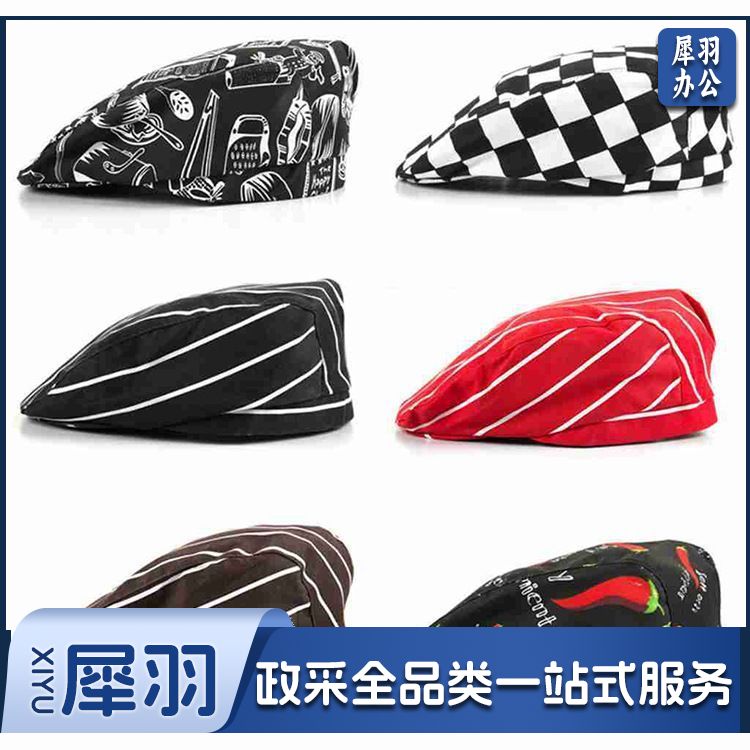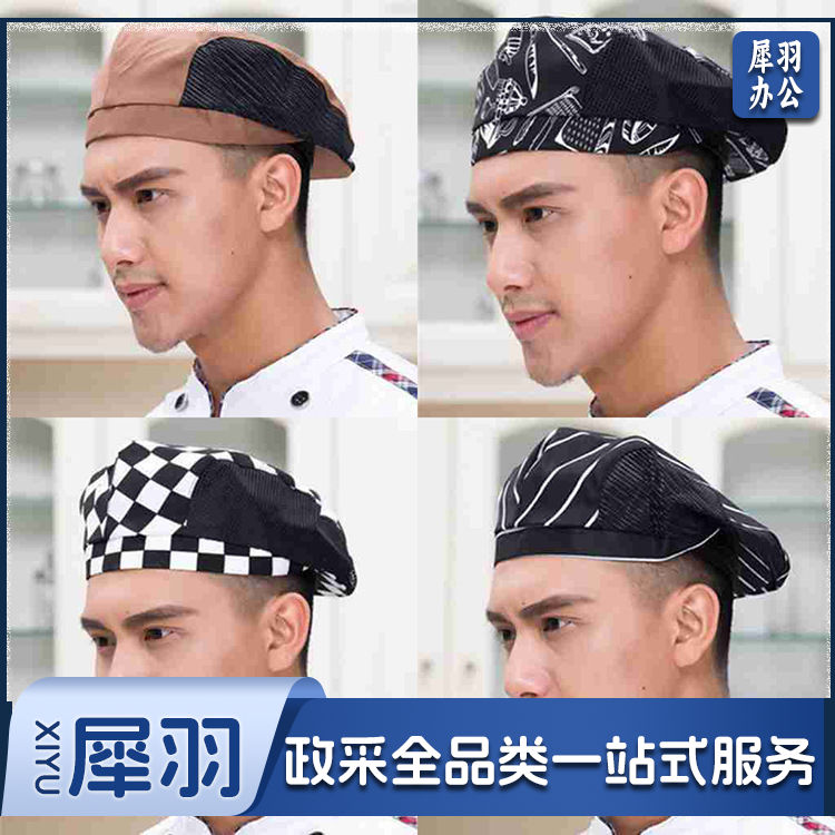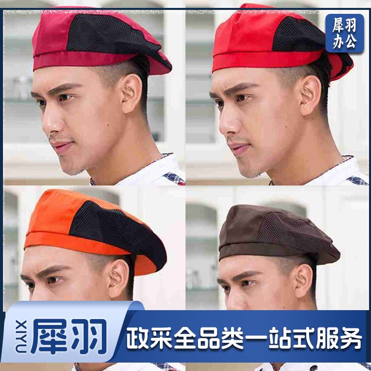 厨师帽子男女夏季透气服务员贝雷帽餐饮餐厅厨房工作帽可定制