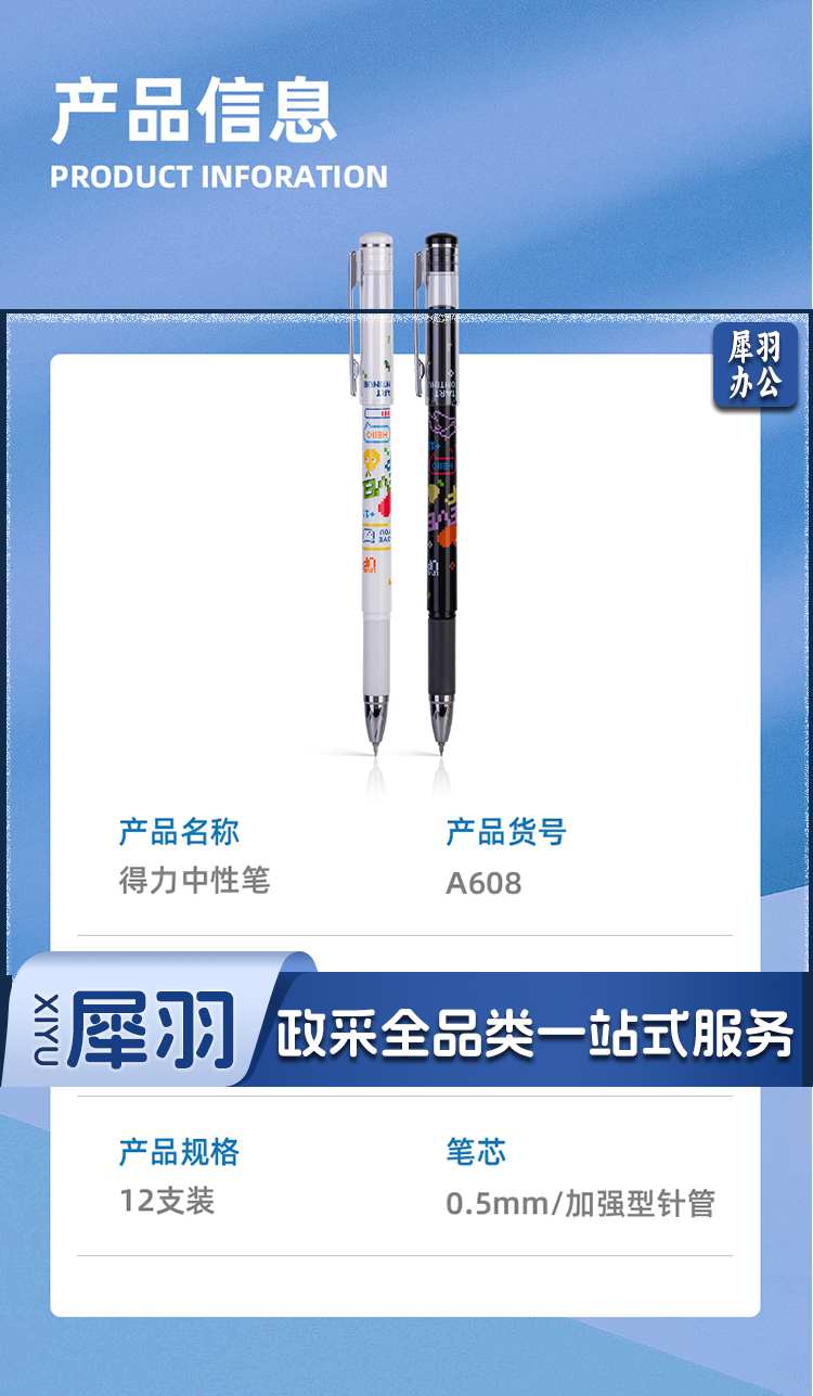 得力A608学生中性笔0.5mm加强型针管(黑)(支)