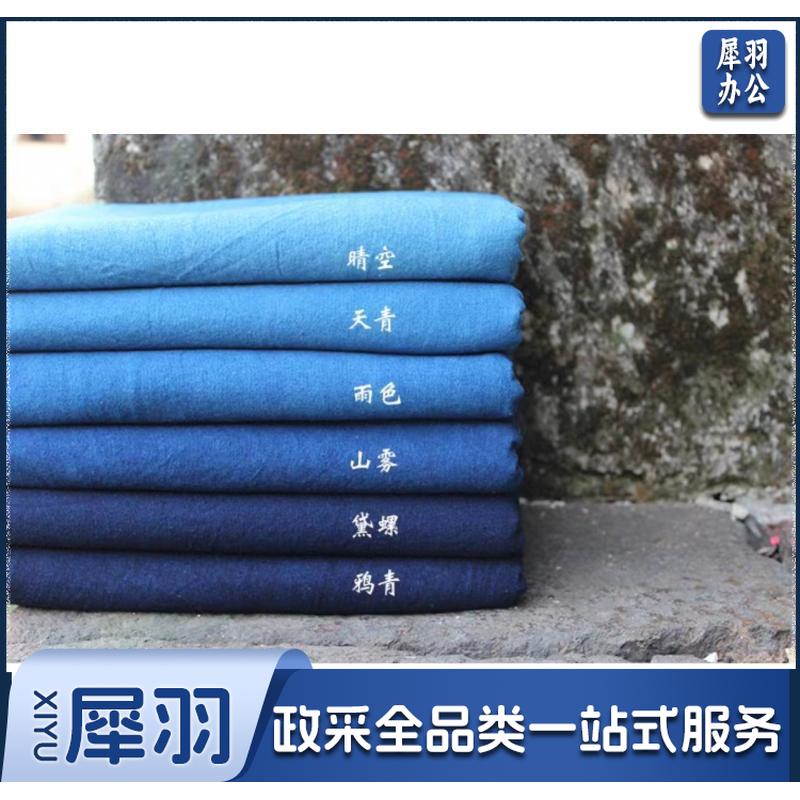 手工靛蓝染纯棉桌布茶席刺子绣植物草木染
