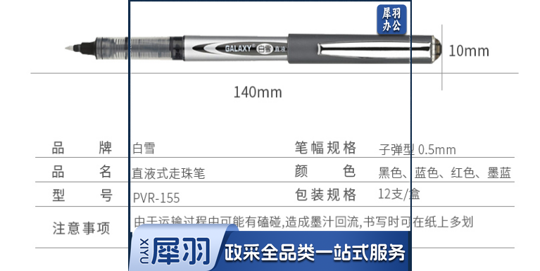 白雪 PVR-155 中性笔0.5mm 红色直液式走珠笔签字笔 12支/盒