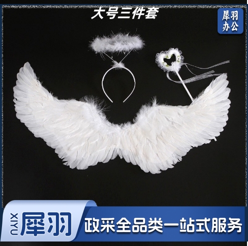 羽毛翅膀天使道具舞台表演儿童模仿走秀演出圣诞节日装饰三件套(大号)