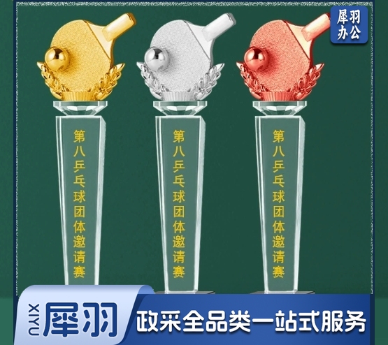 (均号25X8CM)乒乓球比赛水晶奖杯制作体育团体荣誉表彰免费刻字运动会新款奖牌