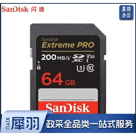 闪迪(SanDisk)64GB SD存储卡 U3 C10 V30 4K 至尊超极速版内存卡 读速200MB/s 写速90MB/s 捕捉4K超高清