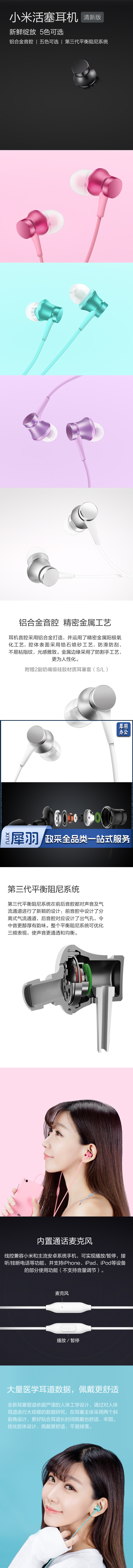 小米活塞耳机 清新版 黑 入耳式手机耳机 通用耳麦