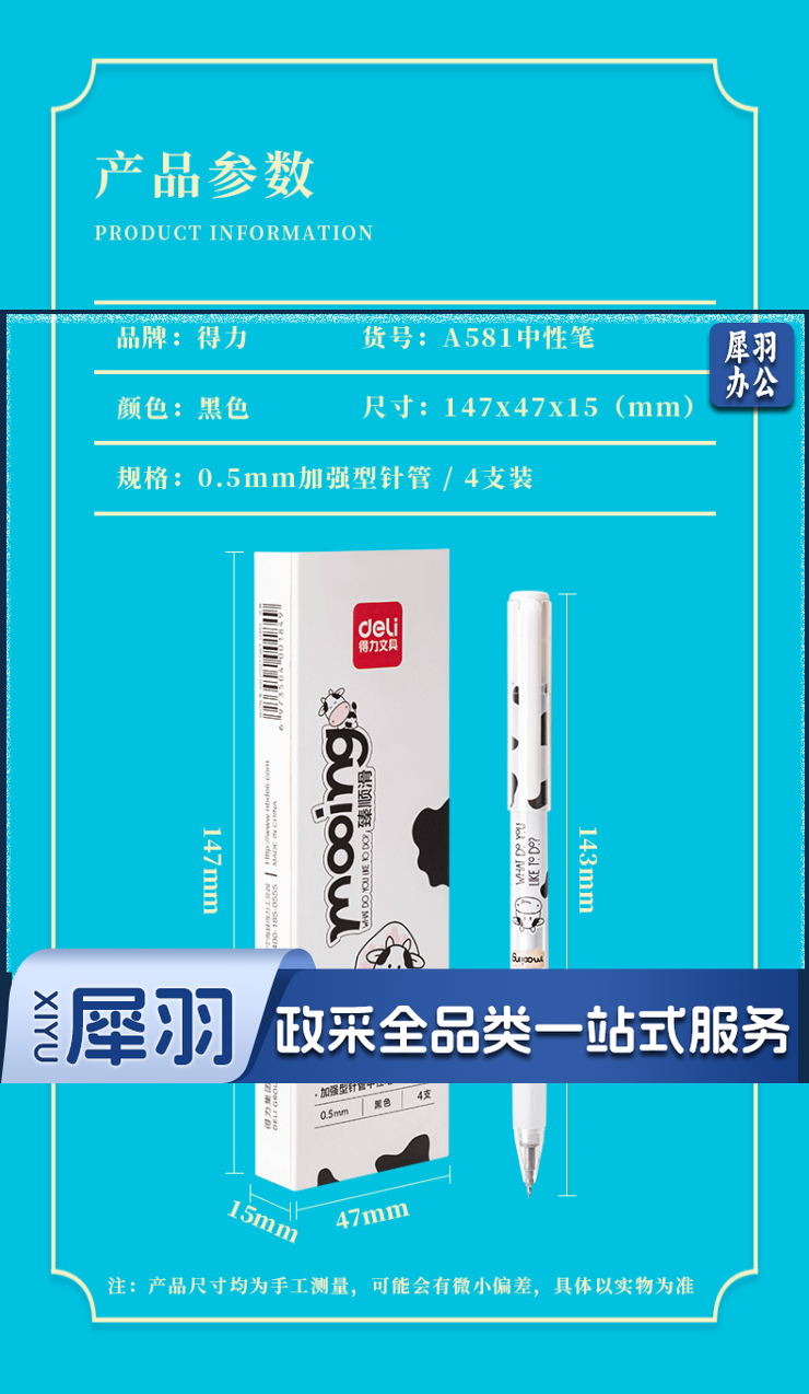 得力A581学生中性笔0.5mm加强型针管(黑)(4支/盒)