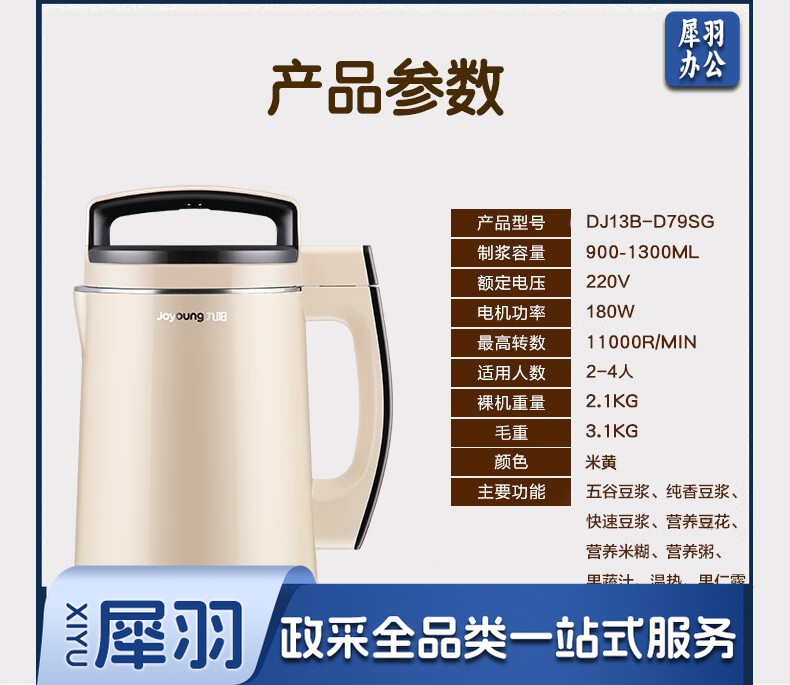 九阳 豆浆机榨汁机双预约免滤 家用多功能米糊机 智能全自动DJ13B-D79SG 【智能双预约】